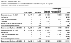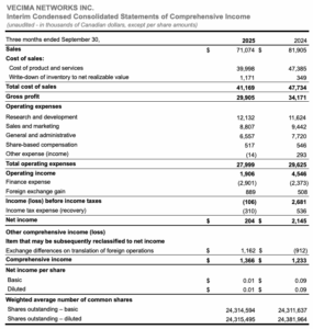 VICTORIA, BC – (November 13, 2025) – Vecima Networks Inc. (TSX: VCM) today reported financial results for the three months ended September 30, 2025.