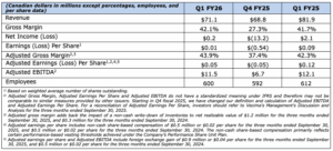 - Generated strong adjusted EBITDA of $11.5 million, compared to $12.1 million in Q1 fiscal 2025. On a sequential quarterly basis, adjusted EBITDA increased 71% from $6.7 million in Q4 fiscal 2025.