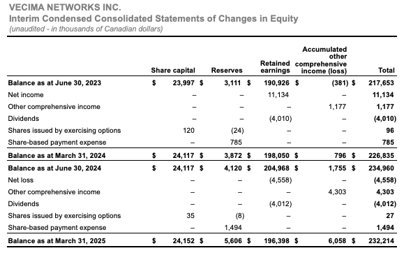 As previously reported, Vecima’s Board of Directors declared a quarterly dividend of $0.055 per share for the period. The dividend will be payable on June 23, 2025 to shareholders of record as at May 30, 2025.